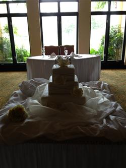 Following a whirlwind photo shoot, Althea and David were introduced as Mr. and Mrs. to their waiting guests at Avila Golf and Country Club. The décor was simple yet elegant, highlighting the wedding colors of yellow and gray. Guests were treated to their choice of entrée and dessert, and following dinner, danced the rest of the evening away to the sounds of Music on the Move. Althea’s sorority sisters were also on hand to serenade her, something every member of Delta Sigma Theta Sorority, Inc. looks forward (yours truly included).